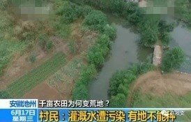 安徽池州河水被污染事件:因化工園違規(guī)排污,污染灌溉水源,這些水中含有大量有毒物質(zhì),造成安徽省池州市東至縣香隅鎮(zhèn)里的數(shù)千畝農(nóng)田變成了荒地。